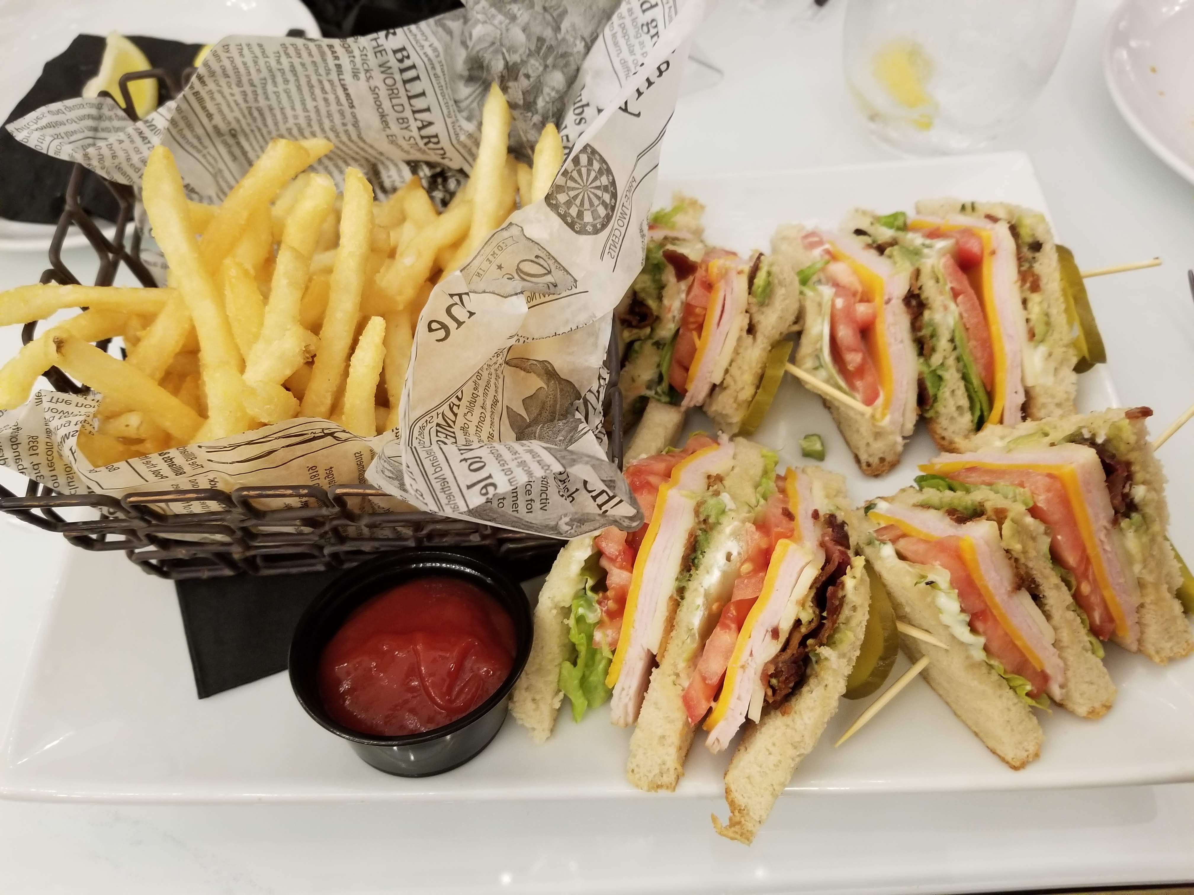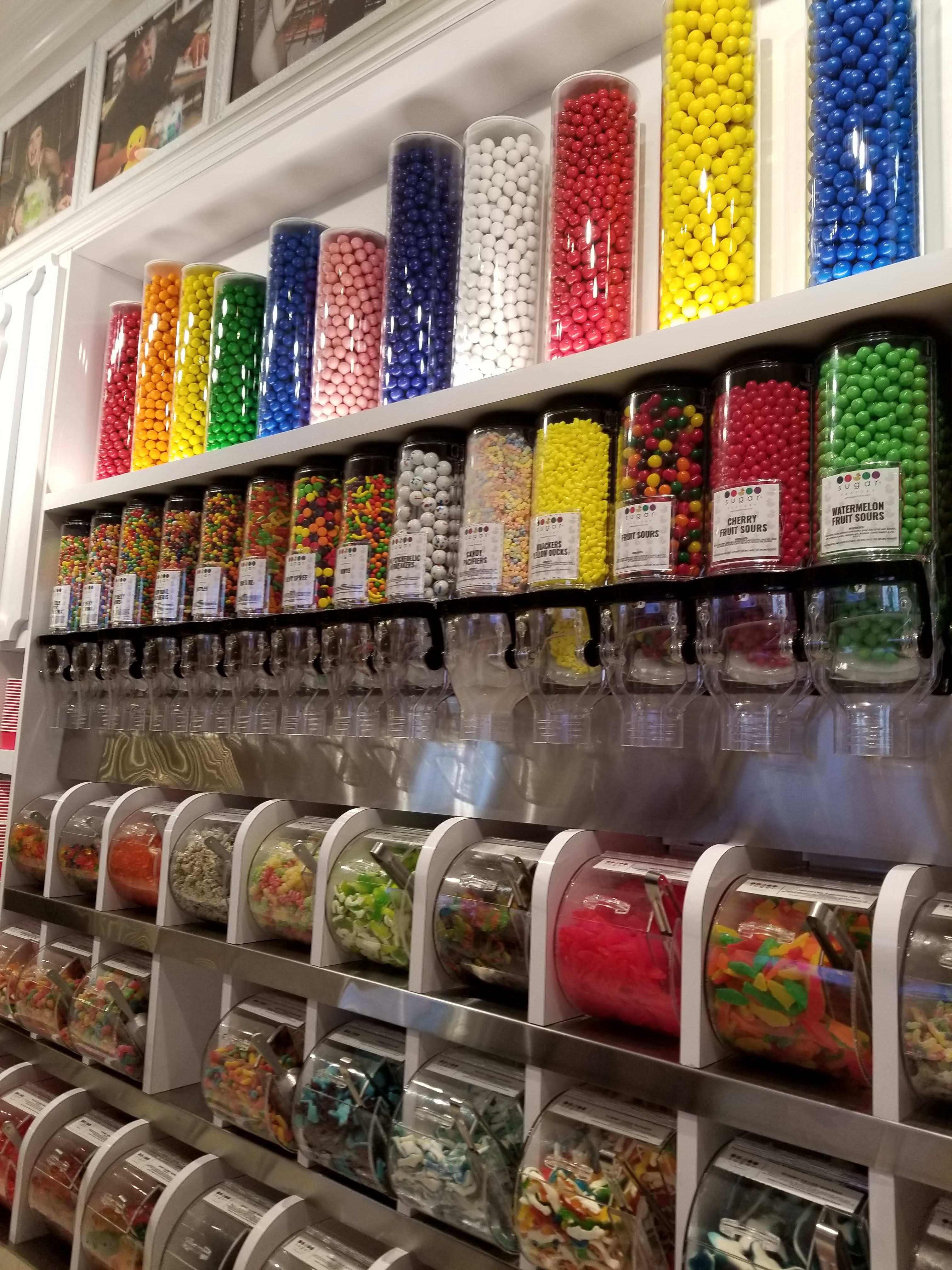 For an appetizer, I had a fried macaroni and cheese pop, which was pretty tasty. My main course was the Sugar Factory Club Sandwich, and it was delicious! A club sandwich is not my typical order, but this one was exceptionally tasty. The turkey, two types of cheese, avocado, tomatoes, and pickles with herb mayo on toasted bread made for a perfect combination! I did not order a cocktail in order to save room for an over the top milkshake. All of the milkshake options come in a tall decorated glass with insane toppings, including cotton candy, waffles, cheesecake, donuts, cupcakes, or even a burger! I ordered a nutella banana milkshake. It came in a mug covered with chocolate and sprinkles. On top were a lollipop, a candy necklace, and a chocolate covered banana! The milkshake itself was tasty, although nothing different than I have had in less expensive milkshakes. You are paying for the over the top look and the crazy extras. There are also some other crazy options, such as a $1000 chocolate gold fondue. The Sugar Factory also has a small shop where you can buy candy and other candy themed items to bring home.